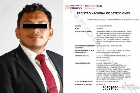 Cae Iván Cuautle Minutti: Detienen en San Andrés al exsíndico de San Pedro Cholula
