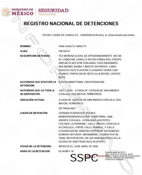 Tras su captura en la calle Miguel Hidalgo, Cuautle Minutti fue trasladado bajo un fuerte operativo a la Casa de Justicia de San Andrés Cholula. Aunque inicialmente enfrentaba el proceso en libertad con medidas cautelares (firma periódica y prohibición de salir del país), se presume que un incumplimiento o la evolución de la investigación por falsedad de declaraciones derivó en esta detención.