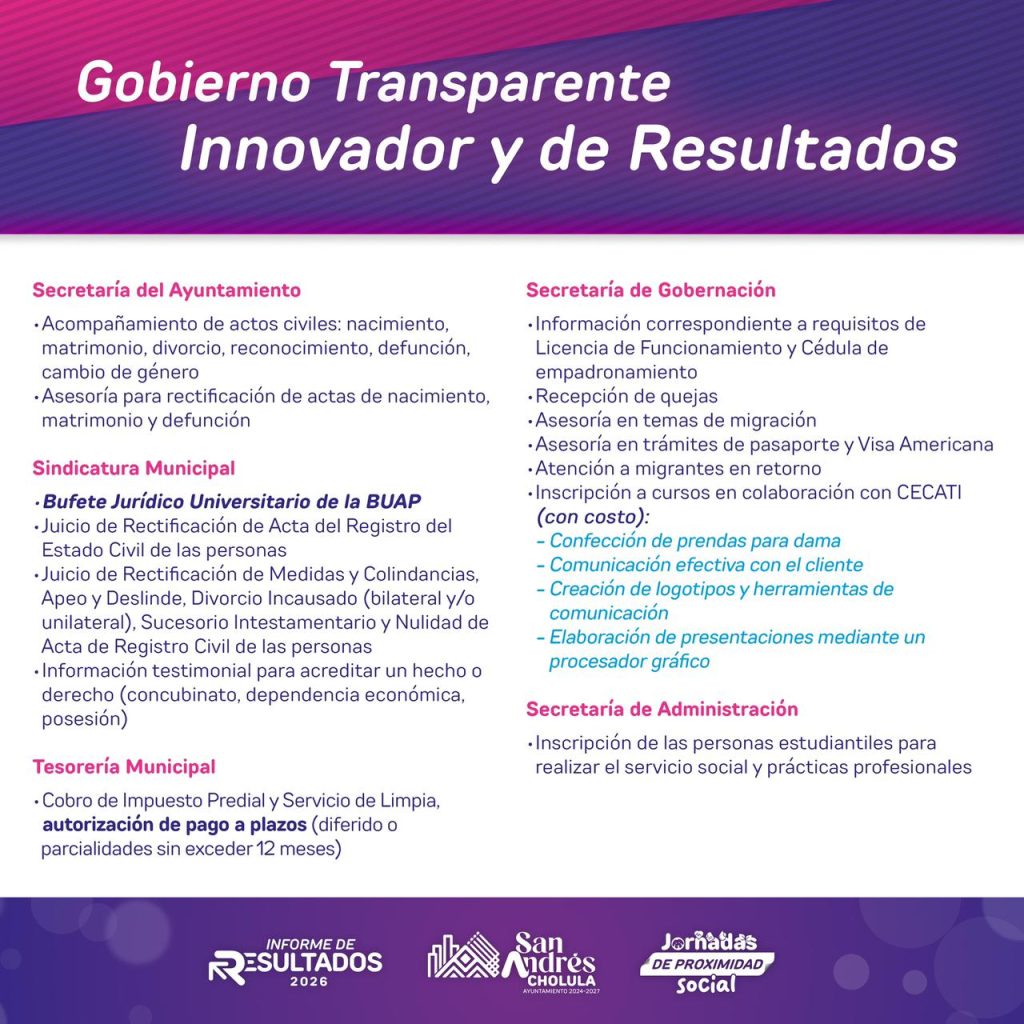 SAN ANDRÉS CHOLULA, Pue. — Con la meta de eliminar las barreras entre el ayuntamiento y los ciudadanos, la presidenta municipal Lupita Cuautle anunció una macro Jornada de Proximidad Social. El evento tendrá lugar en la Unidad Deportiva Mayaquen, donde todo el gabinete municipal atenderá de manera personal las inquietudes de los vecinos.